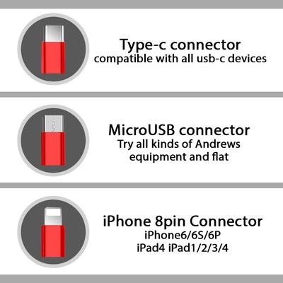 Prosuliarities3v1Charging Cable وظيفة لـ Apple / Micro USB / USBTYPECMARDIAL: سلك متين منسوج وسبائك معدني 3v1 كابل USB 3ports Output3amax/Singel Port Output2Ax iOS 9 10 11 12 - نوع Androidandusb cnote ملاحظة: كبل واحد فقط لديه وظيفة نقل البيانات foriphonefunction1fast شحن الكبل الكابل 2Mobile