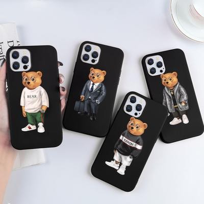 Cartoon Cute Bear TPU Soft Phone Case for iPhone 13 12 11 Pro Max Samsung Gal