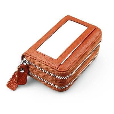 موضة نساء أصلي بطاقة الائتمان الجلدية محفظة سعة كبيرة السوستة مزدوجة أنثى